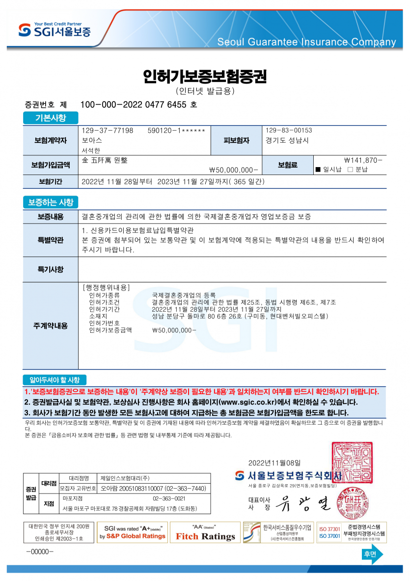 보아스국제결혼(이하 회사)은 국제결혼 약관을 성실히 준수하며 "결혼 중개업의 관리에 관한 법률" 제 10조에 의거 표준약관을 준수합니다.